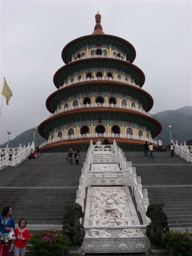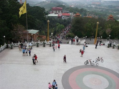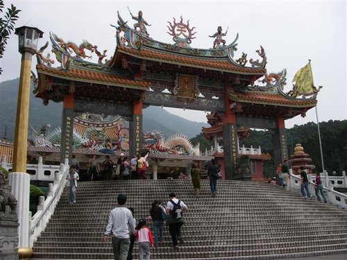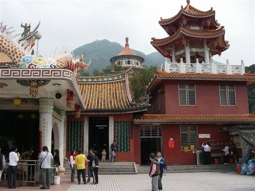 無極元天宮座落於台北縣淡小鎮水源里,原稱水梘頭。距淡水市區約五公里,居大屯山脈西北,面天山麓丘陵地,依山面海,氣勢天成。由宮前停車廣場,經梅花型五龍池,登階拾級即入天聖門。山下無極天元宮,有龍池井一口,水質甘甜,有人特地來此取水,泡茶飲用稱為上品。轉向龍邊大道直行,視野廣闊,仰瞻崧峨雄偉,美侖美奐之真元天壇顯現於眼前。沿九龍神路登階而上,經過大前庭,即可進入真元天壇。