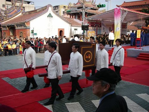 臺北市孔廟刻正進行「三級古蹟臺北孔廟修復工程」,因修復工程進入大成殿、東西廡、崇聖祠等主體建築施作,為維遊客安全,孔廟園區97年1月10日起至97年8月31日止,暫停對外開放。
