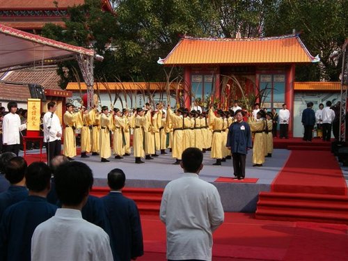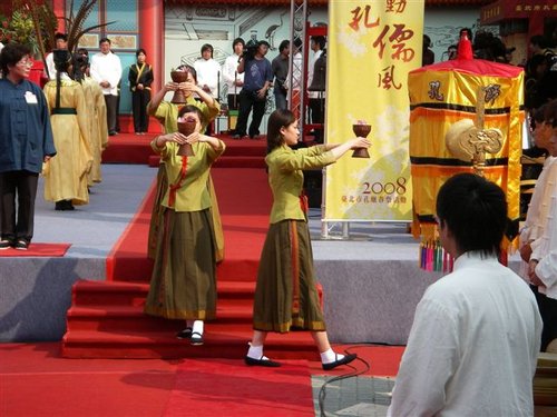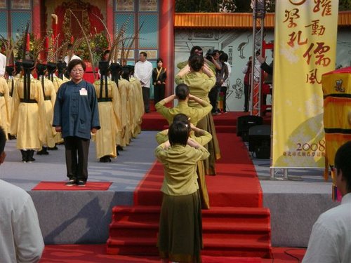 陪祭官若干人由禮生引導,由東西兩側入場,根據釋奠禮應立於大成殿廣場南端,面向大成殿。