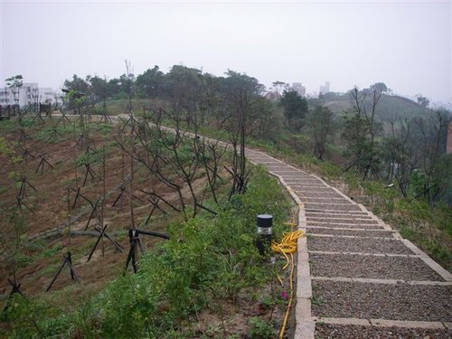 公園緊鄰南港公園西側,屬水土保持範圍山坡地,基地呈狹長型,高低差約20公尺,特別的是,因墳墓拆遷工程,須設置水土保持設施,如沉砂滯洪池、排水溝及於裸露坡面舖設草蓆毯,以免水土流失,這是一般公園沒有的設施。