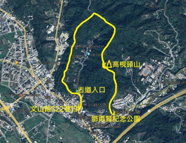文山路322巷口→文林生態古道入口→高梘頭山→鄧雨賢紀念公園