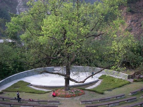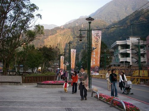谷關櫻花栽種在汶山飯店廣場,近百棵羅列,每年二月中旬,嫣紅的花道環繞在碧綠湖邊,既有情調又浪漫。