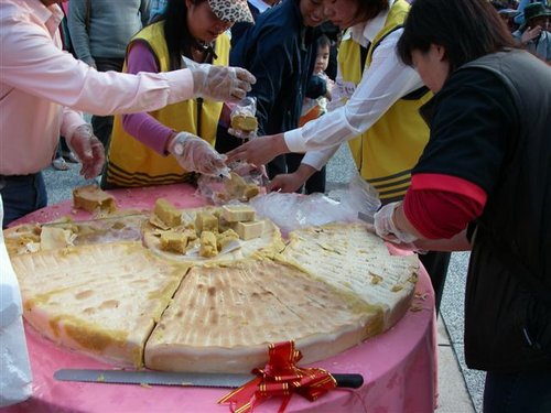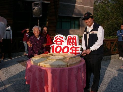 活動開幕儀式就是由住在和平鄉天輪村的人瑞古謝快妹與來賓一起持刀切「鼓餅」,「分大餅」為谷關慶生,遊客也分享人瑞健康長壽的福氣。