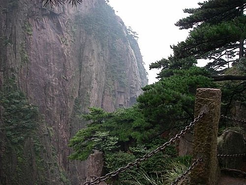 黃山松的另一特點是,由於風吹日曬,許多松樹只在一邊長出樹枝。