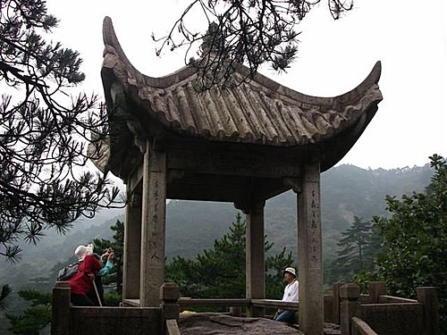 黃山第二高峰光明頂,海拔1,860米。明代普門和尚曾在頂上創建大悲院,現在其遺址上建有華東地區海拔最高的氣象站——黃山氣象站。因為這裡高曠開闊,日光照射久長,故名光明頂。頂上平坦而高曠,可觀東海奇景、西海群峰,煉丹、天都、蓮花、玉屏、鰲魚諸峰盡收眼底。華東地區海拔最高的氣象站--黃山氣象站就設在這裡。由於地勢平坦,所以是黃山看日出、觀雲海的最佳地點之一。