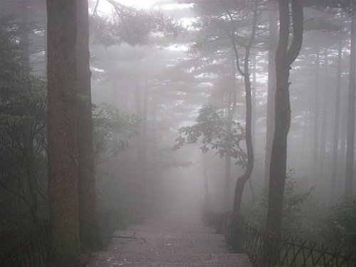 一路在雲霧中往下走