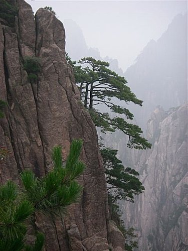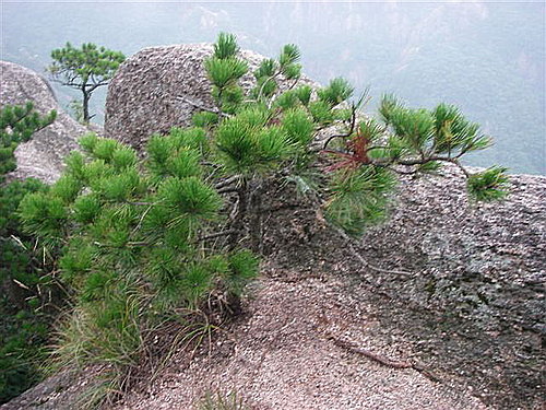 黃山松是由黃山獨特地貌、氣候而形成的中國松樹的一種變體。黃山松的種子能夠被風送到花崗岩的裂縫中去,以無堅不摧、有縫即入的鑽勁,在那裡發芽、生根、成長。
