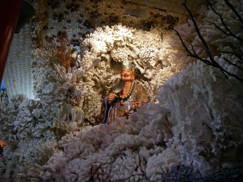要進去裡面的十八羅漢洞,必須要先上香拜拜才能進去裡面,這是廟方的規矩。十八羅漢洞裡面的高度蠻低的,身高高的人可能不只是要低頭,而且是要彎腰才能在裡面走洞才不致於去撞到頭。羅漢洞雖然規模雖小但是裡面的完全都是用白珊瑚堆置而成的。