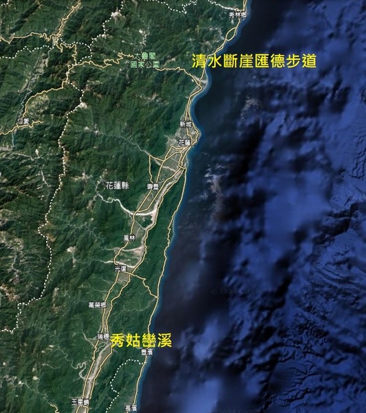 位於蘇花公路174.2K匯德隧道北口的「匯德遊憩區」。這裡有一段舊蘇花公路已整修為「匯德景觀步道」,長約一公里,供遊客步行觀景。途中有一條「匯德步道」可通向海岸,眺覽附近斷崖景觀、大理石岩層及欣賞海水的顏色變化。但因步道部份路基被海水掏空受損,目前正在整修,並未開放。