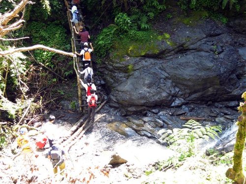 大伙利用小溪澗清洗滿是泥巴的登山鞋