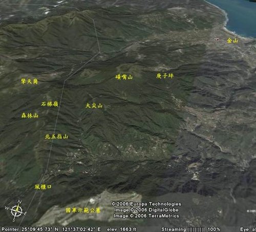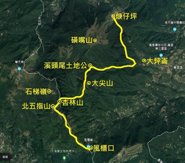 附錄 : 大坪古道、鹿堀坪古道、淡基橫斷古道東段接「陽明山東西大縱走」東段步道到風櫃口路線圖