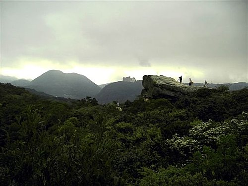 丹鳳山不似軍艦岩那般陡峭,但是自然環境相近。軍艦岩常見的植物,如芒箕、車桑子、細葉饅頭果等,這裡也都有,而且範圍更加遼闊。不過也許因為過去曾經發生火燒山,步道大半區域兩旁都以繩索區隔開,標示是禁止入內的「護育區」。