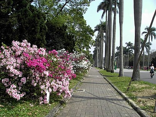 椰林大道旁的杜鵑花