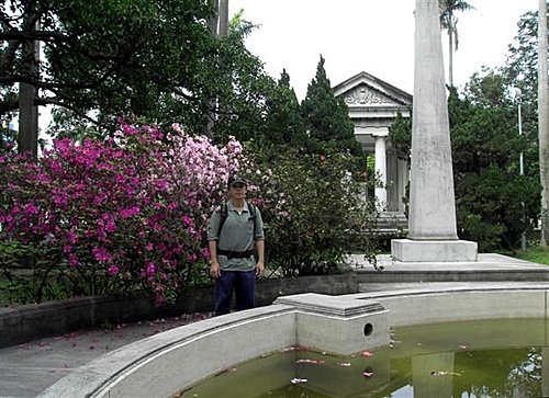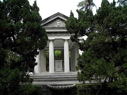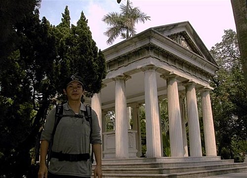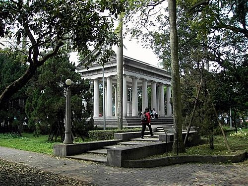 在傅園裡,唯一的人工建築就只有葬有傅斯年校長的斯年堂及其前方的方尖碑、噴水池。它們可是仿造古希臘建築中的神廟和埃及紀念碑的形式,坐在彷彿希臘神廟的傅校長衣冠塚前,是不是就像回到希臘時代,蘇格拉底在廣場前與人爭辦的情景就在眼前呢!而這也象徵著民主、自由,代表了傅校長對校園民主與學術自由的理想。