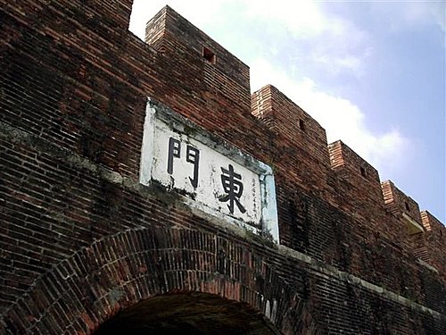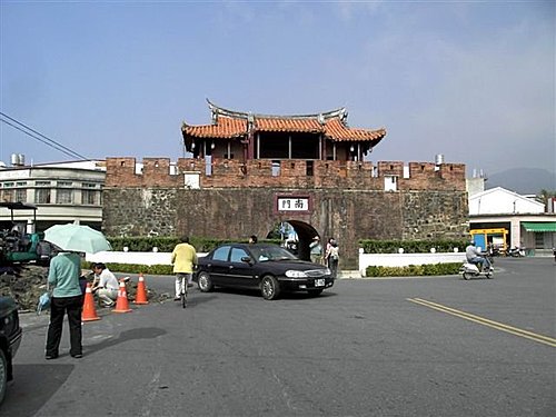 東門與南門的門匾上刻「清光緒元年季秋月建」,可見證奠基建城年月。東門不但有城門,城樓還保留一段城牆延伸到三台山下的北門。祇可惜整建時遷就道路切斷城牆。在厚實的城牆外,還可在養鴨水塘覓得護城河殘跡,頗具古意。昔日東門是通往卑南的必經之道,登上城樓遠眺,赤牛嶺、龍鑾潭名勝、鎮內風光歷歷在目。