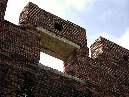 城上之「女垣」,又稱「女牆」(或城垛),為城牆上的突出物,不僅使單調的城牆更具造型,還有實質防衛功能。恆春縣的雉蝶主要以閩南磚砌成。現今所見城垛多是民國七十九年後整修重建。