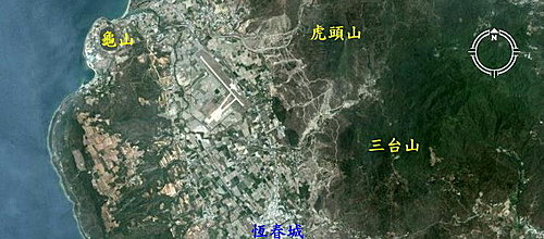 根據「恆春縣志」所載,當年督辦築城者對堪輿頗有研究,其選定的縣城位置的東北一里為三台山,是中央山脈餘脈尾端之山頭,是為玄武,作為主山。城南六里的龍鑾山,居左為青龍;虎頭山正對縣城北門為白虎。西平山位西南五里,如一字平案,正居縣前為縣城朱雀。所指的西平山就是觀夕陽晚霞的關山。縣城由四靈護衛,唯西北方稍有空隙,則以遠處的龜山作屏障,猴洞山恰為城內龍脈所在。走入恆春城不妨環顧一下四周的山頭,想像四方庇祐的地理架勢,確實有番道理。風水觀念在中國傳統社會-向為官民所重視。築城是大事,擇址就更富學問與玄機了。