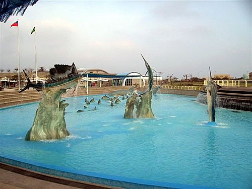 海生館門口的旗魚與海豚的雕塑