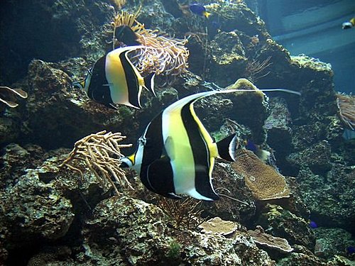 燕魚Batfish是屬於銀共科(Ephitididae)之燕魚屬(Platax)魚類,台灣共有一屬四種,其分佈範圍及棲息環境相當廣泛,除了紅樹林較為常見外,沿岸珊瑚礁、岩礁區,甚至人工魚礁區附近均可見其蹤跡。幼魚背鰭、臀鰭及腹鰭往往既長且寬,體側並有2~3條橫帶,喜好三、五成群藏身在馬尾藻叢或漂浮水面的雜物下,狀若枯葉般地移動。成魚身體變圓,背、臀鰭比例上縮小,橫帶則幾乎要消失了,多半棲息在較深水層,有顯著的群游性,有時數量高達數百尾,遠遠地望過去,這些燕魚有若天際的一席雲彩,煞是好看。值得一提的是燕魚易於馴服且性好奇,常可見牠們在潛水者四周悠游,有時更可以手餵食。其幼魚為動物性浮游生物食性,老成魚則偏好藻食性。