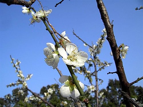 梅( Prunus mume )屬於薔薇科的植物,同科的植物有玫瑰、櫻、桃、李、杏、梨及草莓等等,常聽到的臘梅,開黃色的花,反而不是薔薇科的植物,但是花型很像梅花。薔薇科的植物給地球一個繽紛的色彩,櫻、桃、李、杏、梅都是親戚--梅屬,真的要分的清楚並不太容易,不過梅花與其他成員最容易分辨的特徵便是花瓣的形狀,單瓣的梅花瓣共五片,呈向內圓弧形,規則交疊排列,花炳短。梅花的品系極多,花瓣主要是白色,其他尚有紅梅,甚至還有綠色的綠梅,可惜台灣養梅的風氣不勝,這些特殊的品種大多是園藝愛好者的專利。