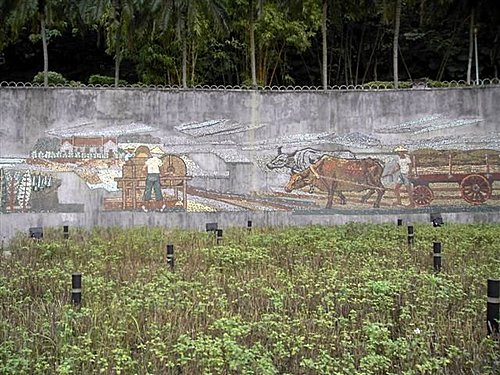 1969年,當時的民選市長高玉樹,在台北市升格為院轄市後仍繼續擔任首都市長,邀請顏水龍教授擔任市政顧問,請顏水龍教授規劃敦化南北路、仁愛路林蔭大道,仁愛圓環;並請顏水龍教授在中山北路劍潭公園擋土牆上製作大型馬賽克壁畫,長達100公尺,名為「從農業社會到工業社會」,因為畫中有很多水牛,被俗稱「水牛圖」。