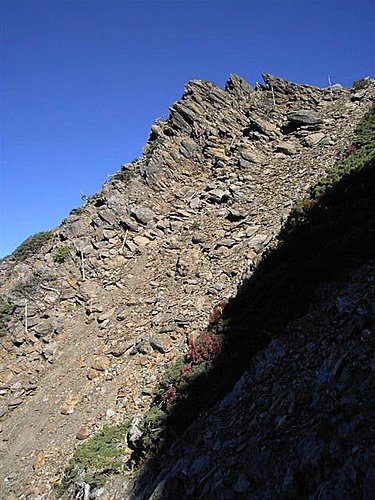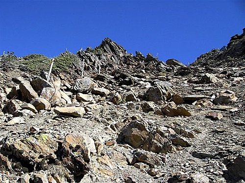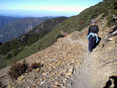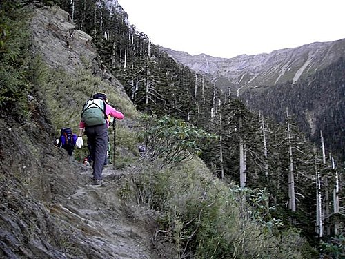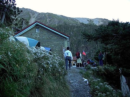 排雲山莊是台灣最高的客棧,由此到玉山主峰 頂上的路程是2.5公里,以之字型的路徑盤旋而上。