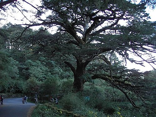 鐵杉為松科常綠喬木,在台灣之溫帶山地針葉樹林中,常呈大面積之純林。混交時,常可由其巨大之枝椏與傘形之樹冠而與雲杉、冷杉區分。於本省海拔2,800公尺左右之高山草生地邊綠,常有因森林火災而造成樹幹殘留,枝椏怒張,經高山強紫外線漂白之枯木,所成之「白木林」特殊景觀,鐵杉即是其中之主要組成份子。