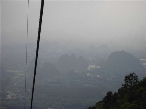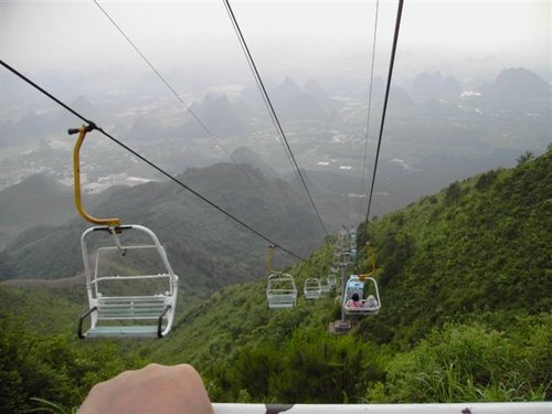 堯山索道全套引進奧地利DOPPELMATYR索道公司先進技術,裝配有自動報警,電視跟蹤等安全防護系統。全長1416.18米,高差是423.3米,設雙人吊椅和吊廂175個,上站位於山頂電視發射臺附近,下站位於王陵旁,索道單向運行時間20分38秒;每小時運送量507人,乘索道由山下直達堯山之巔,極目遠眺,峰海山濤,雲水煙雨的桂林山水風光盡收眼底。