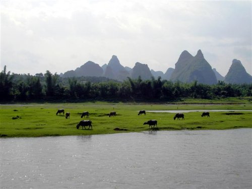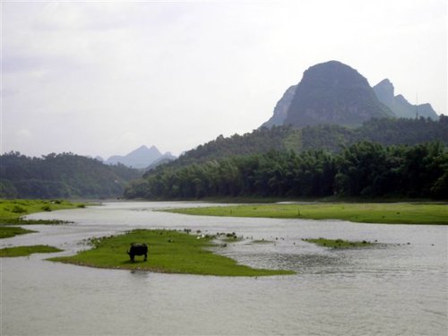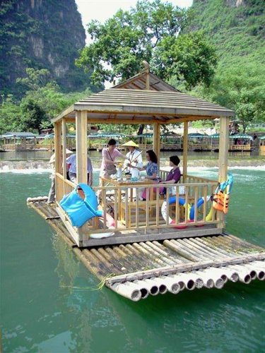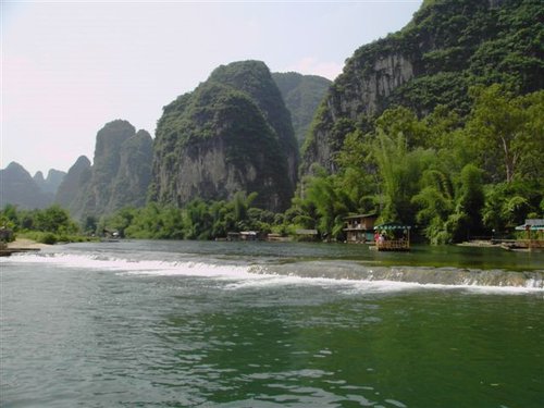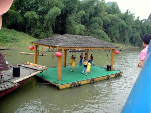 陽朔碼頭搭船遊覽現為漓江上的一新興路線─『鑽石水道』之稱的─劉三姐水上公園,此路線路為漓江上最『精華的地段』在船上一邊欣賞猶如畫般的山水美景,堪為人生一大享受。