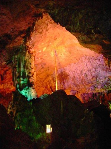 豐魚岩距荔浦縣城16公裏,因岩內清水盛產油豐魚而得名,該溶洞貫穿九座大山,岩內水陸遊自然觀賞區分為三部份:第一部份是稱為天上人間攬勝的陸地遊景觀,全長2公里,洞中石筍、石柱及石林幔林立,其中以寶塔王國、天堂奇觀、蓬萊仙境、不夜城等景點,匯1000多座石柱,恰似世界各國的名塔,有法國的鐵塔、意大利的比薩鐵塔、緬甸的金塔,還有大陸西安大雁塔、杭州雷峰塔等,造型逼真,第二部份是A段”暗河神秘之旅”景觀,全長1.3公里,要穿過”三峽兩洞九重天”乘船漂流40分鐘,給人一股神秘之感,第三部份是暗河B段漂流約1小時,河面寬廣,出山與岩外地表河相連接,給人一股心曠神怡之感受。