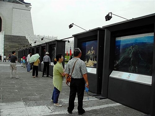 「山的呼喚」台灣土地故事影像特展由行政院文化建設委員會指導,國立自然科學博物館、國立中央大學太空及遙測研究中心、國立中正紀念堂管理處,以及秋雨文化事業股份有限公司/《大地地理雜誌》共同主辦,自2005年3月29日起至6月30日止,於台北中正紀念堂瞻仰大道進行第二站巡迴展出,展覽為期約三個月,後續將移展高雄愛河畔。