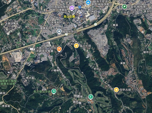 龜山的高度,雖然只有二一八公尺,但因四週圍都低,所以是觀察測量的高地。因此;聯勤測量處在山的最高點,設有三等三角點水泥柱標誌,上書「楊梅三等天文點」。登臨此山,楊梅壢谷的市街,及四周環繞的山區,盡入眼簾,從山下到山頂,有螺形道路盤旋上山。在山頂上,可以東望埔心市街、北望梅岡的楊梅高中及義士村、西望長岡嶺、南望秀才窩及老坑山區。龜山雖是一座小山阜,但自古以來就成為教育的好場所。山麓平地上,在清宣宗道光年間,設罝武館,為轂綰南北官道之要衝,因而成為武營汛地。日本據台後毀其遺跡,但山下在日據時代即設有公學校,就是現在的楊梅國小。光復後又設立楊梅中學,現在改為楊梅國中,不但校園花木扶疏、弦歌不輟,而且桃李滿天下,校譽遠揚海內外。