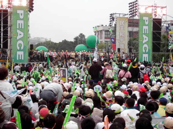 強調反對戰爭,追求和平,隨後在主持人帶領下,全場群眾合唱代表台灣四大族群的「朋友」、「伊是咱的寶貝」、「客家本色」、「我們都是一家人」和西洋歌曲「We Shall Overcome」。