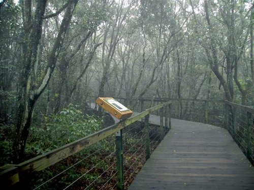 步道長約1公里,以木製棧道架高於地面上,是為了減少對沿線自然環境的破壞,棧道的高度亦方便觀察自然,走在棧道上可以輕易看到樹幹上的生物,仰望枝端的鳥兒或是俯視地面處結著湛藍果實的琉球雞屎樹。