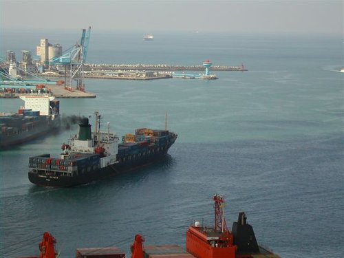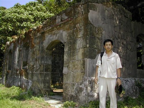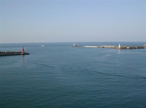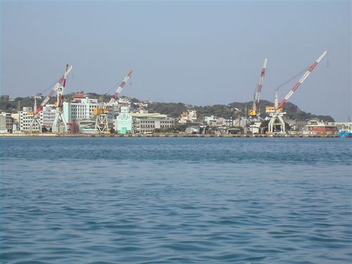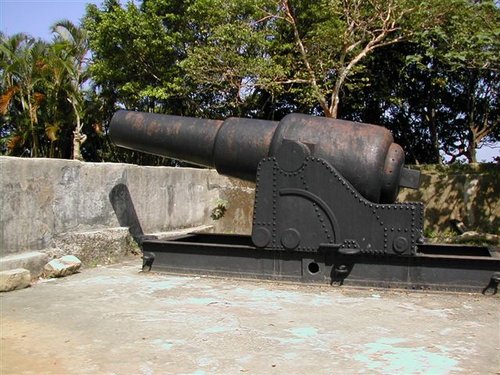 沿著指標來到砲台所在的山上,循步道進入「北砲台區」,登高眺覽:下方近處是基隆港第二貨櫃儲運場,大型貨櫃輪正忙著靠泊和裝卸貨物;遠方則見一艄艄船隻正魚貫的駛進港口....。站在這展望絕佳的高地上,不難想像百餘年前,海門天險扼守港口水域的風發之情。