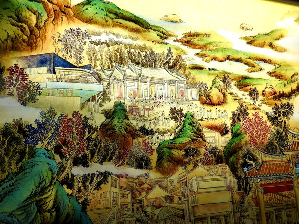 正殿的四面牆堵彩繪為陳壽彝的作品,四面牆的故事題材為四聘,分別是三顧茅廬、堯聘舜、成湯聘伊尹、文王聘太公。