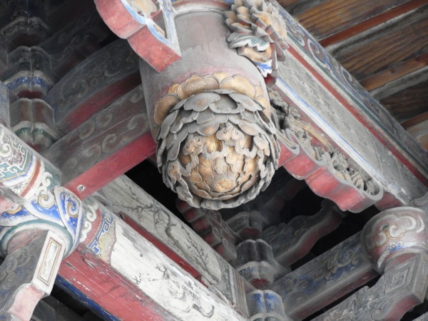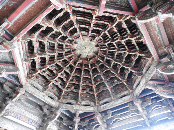 戲台八卦藻井內的彩繪是郭新林在民國五十三年所完成的作品,壽樑上可見郭新林的親筆落款,垛頭的藻飾點綴著八卦藻井,更顯得富麗堂皇,枋心內有鹿港名書法家黃天素的字跡,其上書: