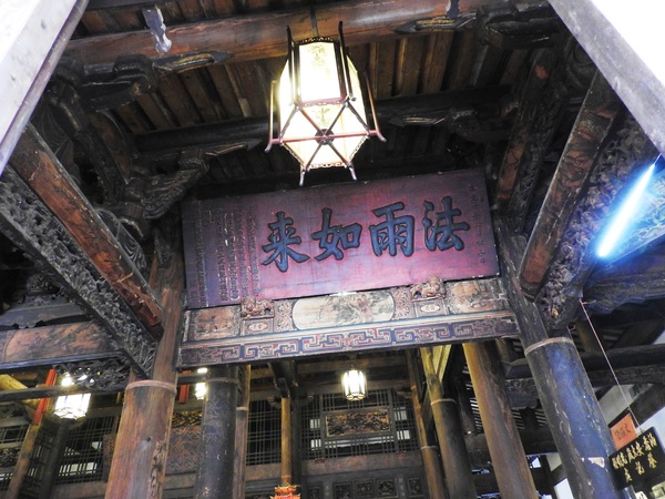 「法雨如來」匾懸掛在正殿內,為道光十年(一八三○)六月五日由嘉義知縣張縉雲所敬獻。張縉雲,直隸安州人,進士出身,道光十年三月任北路理番同知兼鹿港海防總捕分府,同年五月轉任嘉義知縣,時逢嘉義大旱,張縉雲專程至龍山寺祈求普降甘霖,次日滂沱大雨,是以日後米價回穩,張縉雲特立此匾獻予龍山寺,以感念菩薩慈佑賜。