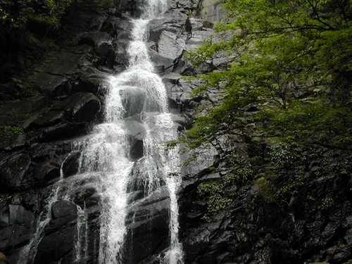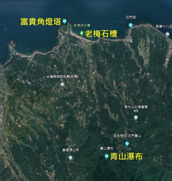 青山瀑布位於老梅溪上游的尖山湖,昔稱「尖山湖瀑布」,高聳的竹子山,匯聚了山中的豐沛水量,水流順勢流經了具高度落差的溪谷斷層,於是就此形成了石門山林中的青山瀑布。沿著步道緩緩而上,沿途有青山與老梅溪一路相伴,還有綠樹成蔭、蟲鳥爭鳴,即便盛夏來此也無需忍受日曬之苦。