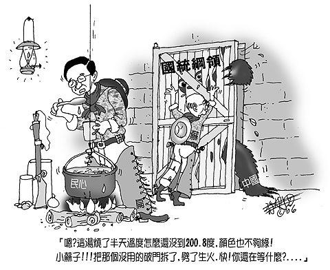 阿扁有玩弄權謀的毒癮,深綠獨派也是牠的棋子.現在百廢待興,什麼不好作,要搞沒有實質意義的廢除國統綱領與國統會? 搞出台海危機,甚至產生戰爭,除了泛藍沒好日子過,深綠就能倖免於禍? 到時阿扁從自己安排好的秘密退路,攜巨金從空氣中消失,倒楣的是誰?趕快換個老闆拼經濟吧!
