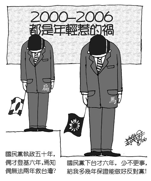 有人好奇,我是不是在野黨的支持者?為什麼漫畫中多半是挑執政黨的毛病?我最真實的回答是:"我愛我出生的地方,我不屬於任何政黨,沒有任何色彩偏好.我是台灣百姓之一,政府的責任是服務人民,我們的責任是監督政府盡到責任."無論是誰在台上,若是失職,人人都有責任要指出來.執政黨應該有執政黨的樣子,在野黨當有在野黨的風骨.