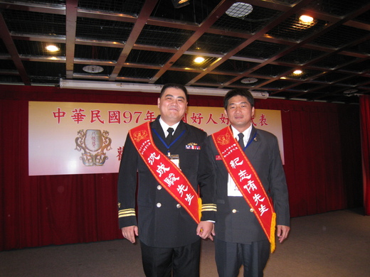其實去年(97年)的今天,有榮幸榮獲「九十七年全國好人好事代表」,都要感謝在部隊提拔我的長官以及所有週遭的朋友,更要感謝我的母親,一個人把我扶養,不畏辛苦,謝謝您,在爾後的日子裡,在學校、在社會上會一直推展志工,且當個快樂的志工。限會員,要發表迴響,請先登入