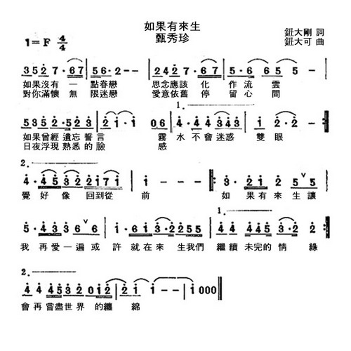 如果還有來生'我一樣傾聽你甜美的歌聲