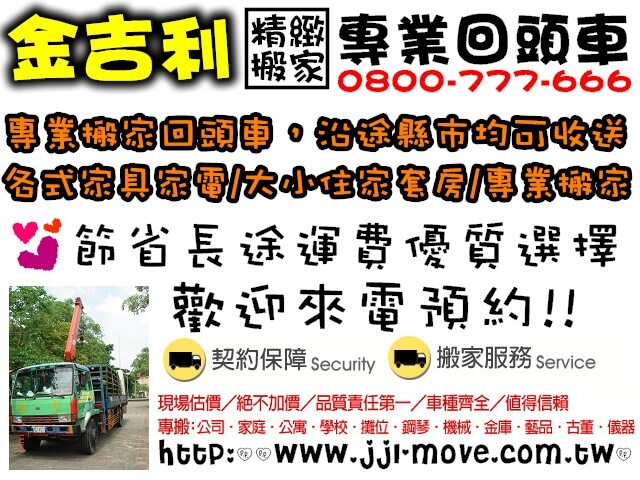 線上客服 Line ID- jjlmove (金吉利台南搬家)
