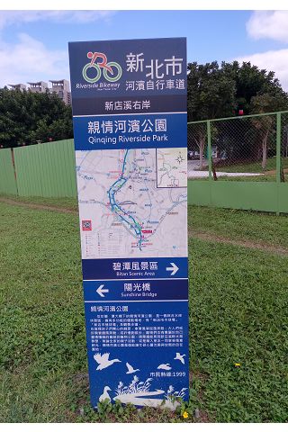 這回有劉大嫂同行,她住北邊的淡水,對環河自行車道南方這頭的新店比較陌生,為略盡地主棉薄,路過碧潭吊橋、慈母塑像、自行車道壁畫、寵物公園、大新店游泳池、網球場、新店義民廟、鎮南宮白馬寺等處,都略作導覽介紹,景觀也不再贅述。然後跨越環河快速道路,接上美河市廊道,走到捷運小碧潭站。
