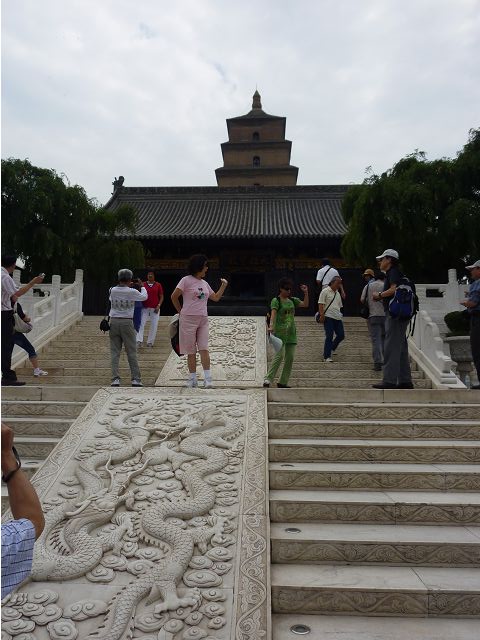 經大慈恩寺邁入景區,猶如寺院道場伽藍大殿的佈局,走過古色古香的鐘樓、鼓樓,兩側排列著客堂、雲水堂、大雄寶殿、甘露堂、財神殿、法堂、先覺堂、示現堂、觀音殿等,然後來到大雁塔,站在塔下,仰望這座原由玄奘法師主持修建的古塔,歷經改建和千年風雨淬練,承載着濃厚的歷史文化底蘊,遙想當年玄奘法師西行取經歸來,在這兒潛心譯經的身影,心裡充滿了敬意。參觀了玄奘三藏院、玄奘紀念館,仿唐建築大氣恢弘,設有般若堂、光明堂、大遍覺堂、聞慧堂、慈恩圖書館等,瞻仰玄奘法師坐像,觀賞浮雕記錄的唐三藏故事和當年取經路線與過程,透過館內展示說明,讓人更感佩玄奘法師尋經問道的毅力,以及對佛教的貢獻。