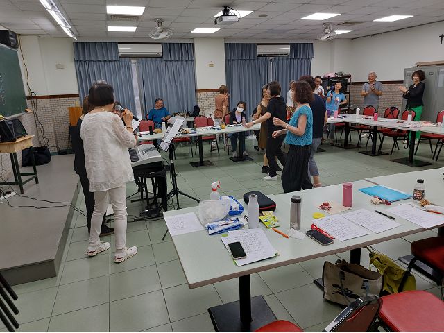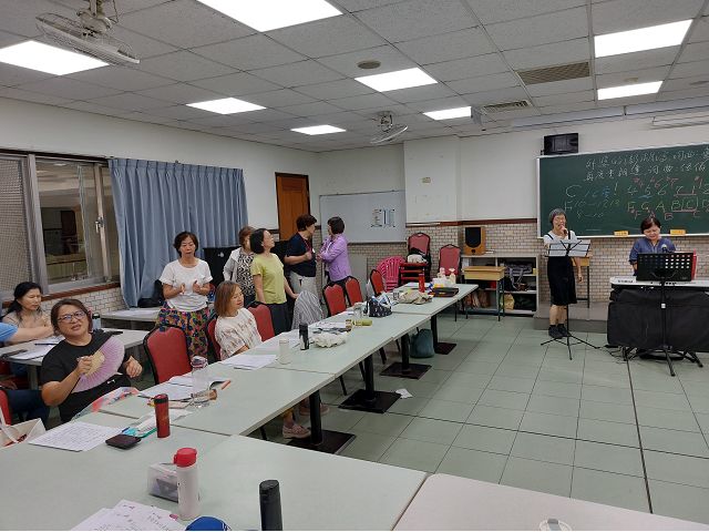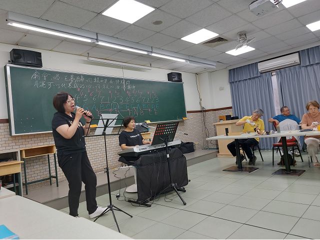 崇光社大歌唱班上課氣氛越來越輕鬆活潑了,10/3教唱"廟會、月亮可以代表我的心(楊坤)",廟會的節慶氣氛,旋律輕鬆愉快,比較容易上手,同學演唱時,有人技癢,就下場跳起舞來,老師是鼓勵的,有時她也不伴奏了,設定好電子琴的節拍旋律,乾脆下場和大家一起跳舞,課室裡歡樂滿堂,嗨到最高點。班裡唱將級高手多,大都選唱"月亮可以代表我的心",別和鄧麗君唱過、耳熟能詳的"月亮代表我的心"搞混了,歌名多了兩個字,可旋律複雜多了,恆元卻別出心裁,把新舊兩首歌裁成組曲唱出來,柔和平順,天衣無縫,令人佩服。新同學穎怡自認音感不佳、五音不全,所以來上課,勇敢邁出步伐是有收獲的,在老師帶領、鼓勵下,也能以低沈嗓音演唱"廟會"了,唱完,大家熱烈鼓掌,穎怡加油!(請參閱:「20250912崇光社大歌唱班秋季班開學. 9/26課後同學聚餐感謝老師教導https://blog.udn.com/jkt19813/183688484」)