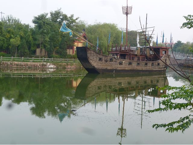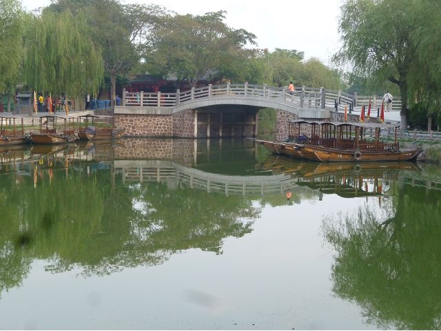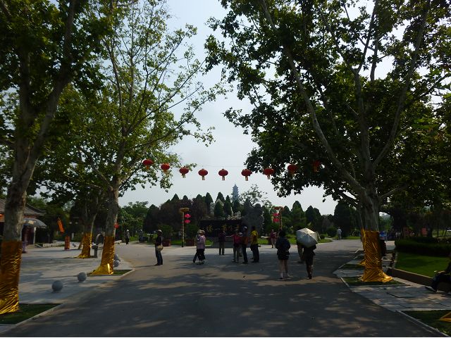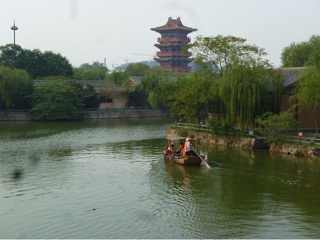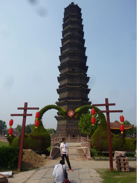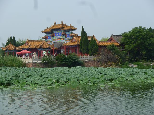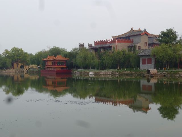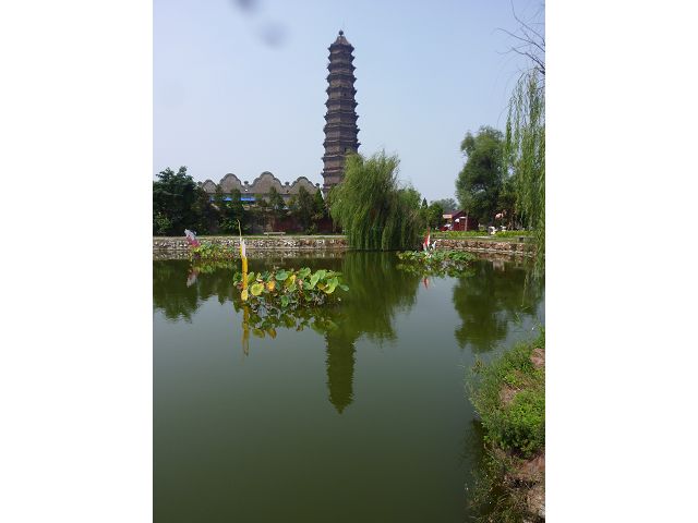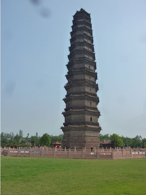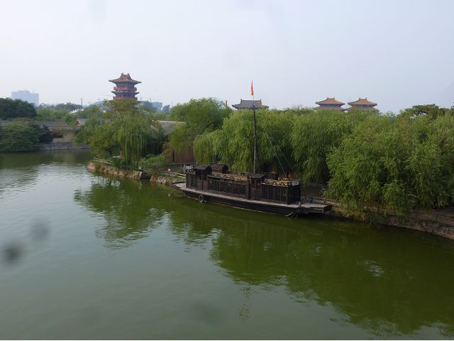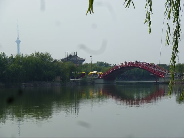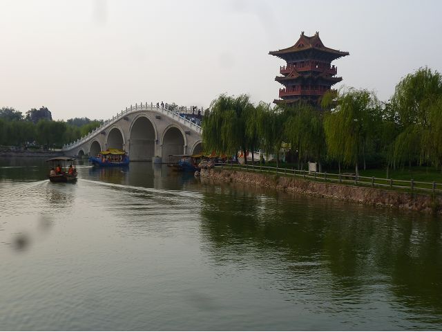 第八天(9/16),遊覽車接我們從湯陰轉進開封開寶寺鐵塔,途中跨越黃河,一樣是鐵橋,但此處已無想像中的壯觀;之後,參觀鐵塔公園和清明上河園。開封市位於河南省中東部,是七大古都之一,有"七朝都會"之稱,建城史已4100餘年;北宋建都在此,歷經9帝168年,是開封歷史上最為輝煌耀眼的時期,經濟繁榮,富甲天下,人口百萬,風光旖旎,城郭氣勢恢弘,是全國政治、經濟、文化的核心,且水運興隆,處於天下之樞、萬國咸通的地位,也是當時世界上最繁華的商業大都市。畫家張擇端的"清明上河圖",就是描繪了清明時節京城汴梁及汴河兩岸繁華熱鬧和優美綺麗的景象。開封旅遊資源豐富,以宋代文物和遺蹟為主、列為重點文物保護單位者繁多,素有"一蘇二杭三汴州"之說,被國家旅遊局列入中原地區和黃河沿線重點旅遊觀光城市名錄裡。