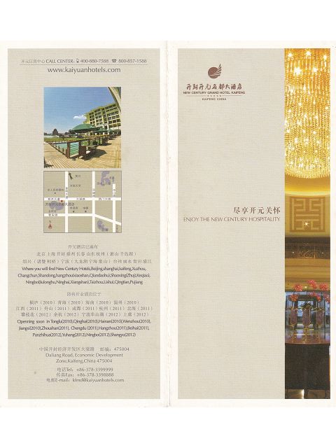 夜宿開封開元名都大酒店(開封市龍亭區鄭開大道1號),座落北宋皇家園林區金明池原址,環境優美,緊鄰有鄭汴紐帶之稱的鄭開大道,交通便利,距離開封市各旅遊景點的車程都在15分鐘之內。