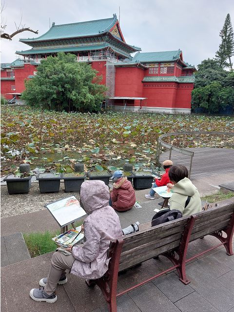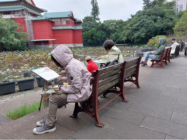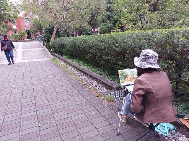 主辦人貼心,天氣變冷,還不忘提請大家多加衣服。老友們已多次健走台北植物園,園區景物了然於胸,是日園外風大,進入裡頭才覺得暖和些。主辦人引領大家繞行園區,分別在博愛路門口、布政使司衙門前、腊葉館、荷花池觀景台及南門町三二三門前合影,和以前一樣,遇見攜帶大炮型攝影機賞鳥人士、老師帶領的幼稚園小朋友,這回多了散佈各角落的繪畫團體成員,以現場寫生看來,都已具相當火候功力了。場景依稀,行進間睹物思人,不免追憶起昔日夥伴安好,是的,從勾稽歷次漫遊植物園的照片裡,有往生的欽亮兄,我們永遠失去他了,有暫時不參加活動的老方夫婦、老鄧、莊兄,他們是否那一天歸隊,不詳,期盼中。和以前不一樣的是,主辦人選擇他們比較熟悉的場所午餐、喝咖啡,輝煌川菜幾乎滿座,生意頗佳,牆上高掛小馬哥光臨時的合照;東吳城區部奕香咖啡廳兼賣簡餐,座位擁擠,喝的手沖曼特寧咖啡也夠水準,物美價廉。路過「feed the Wife BAKERY & DESSERT」麵包店(台北市中正區中華路二段75巷44號),憶華說是名店,特別要求幫她拍照,也因此入內參觀,木質色調裝潢,現場陳列肉桂捲、可頌、酸種麵包、佛卡夏、鹹派、比司吉等糕點,滿室麵包香味,柔和氛圍博人好感,店內標識"每人限購一個肉桂捲",生意好到有點誇張呢。(請參閱本人部落格裡留下的老友健行記錄:「20190905老友健行植物園.參觀欽差行臺.腊葉館.台北當代工藝設計分館https://blog.udn.com/jkt19813/129285805」、「20221020老友健行植物園.參觀郵政博物館.孫立人將軍官邸.陸軍聯誼社午餐https://blog.udn.com/jkt19813/177374622」、「20240201老友健行植物園.蕃薯藤自然食堂自助午餐https://blog.udn.com/jkt19813/180320796」。)